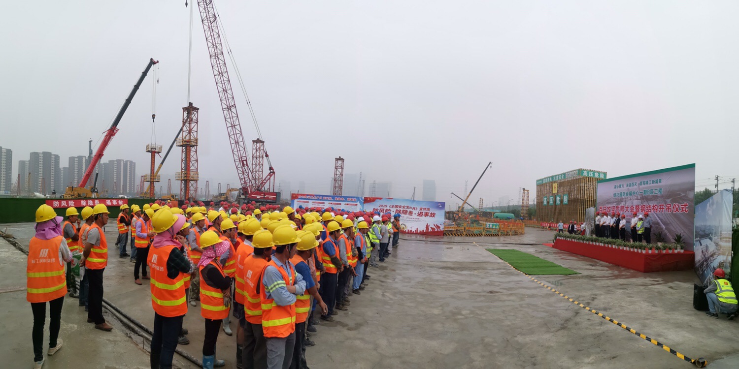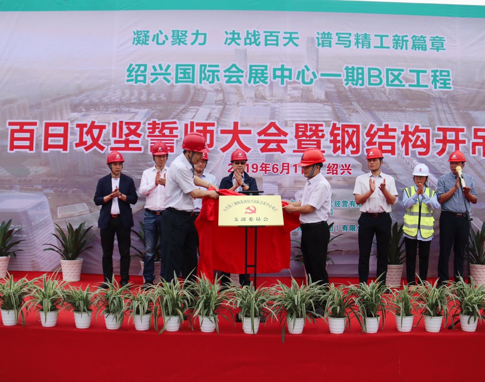 紹興國(guó)際會(huì)展中心一期B區(qū)工程 舉行百日攻堅(jiān)誓師大會(huì)暨鋼結(jié)構(gòu)開(kāi)吊儀式
