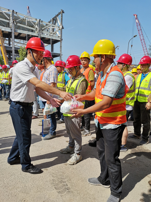 工地現(xiàn)場負責人代表工人對集團領(lǐng)導(dǎo)的關(guān)心和問候表示感謝,并積極表示會全力做好防暑降溫工作,合理安排工序和休息時間,在確保施工人員身體健康的前提下,繼續(xù)加強工程安全和質(zhì)量意識,保質(zhì)保量完成各階段施工目標。