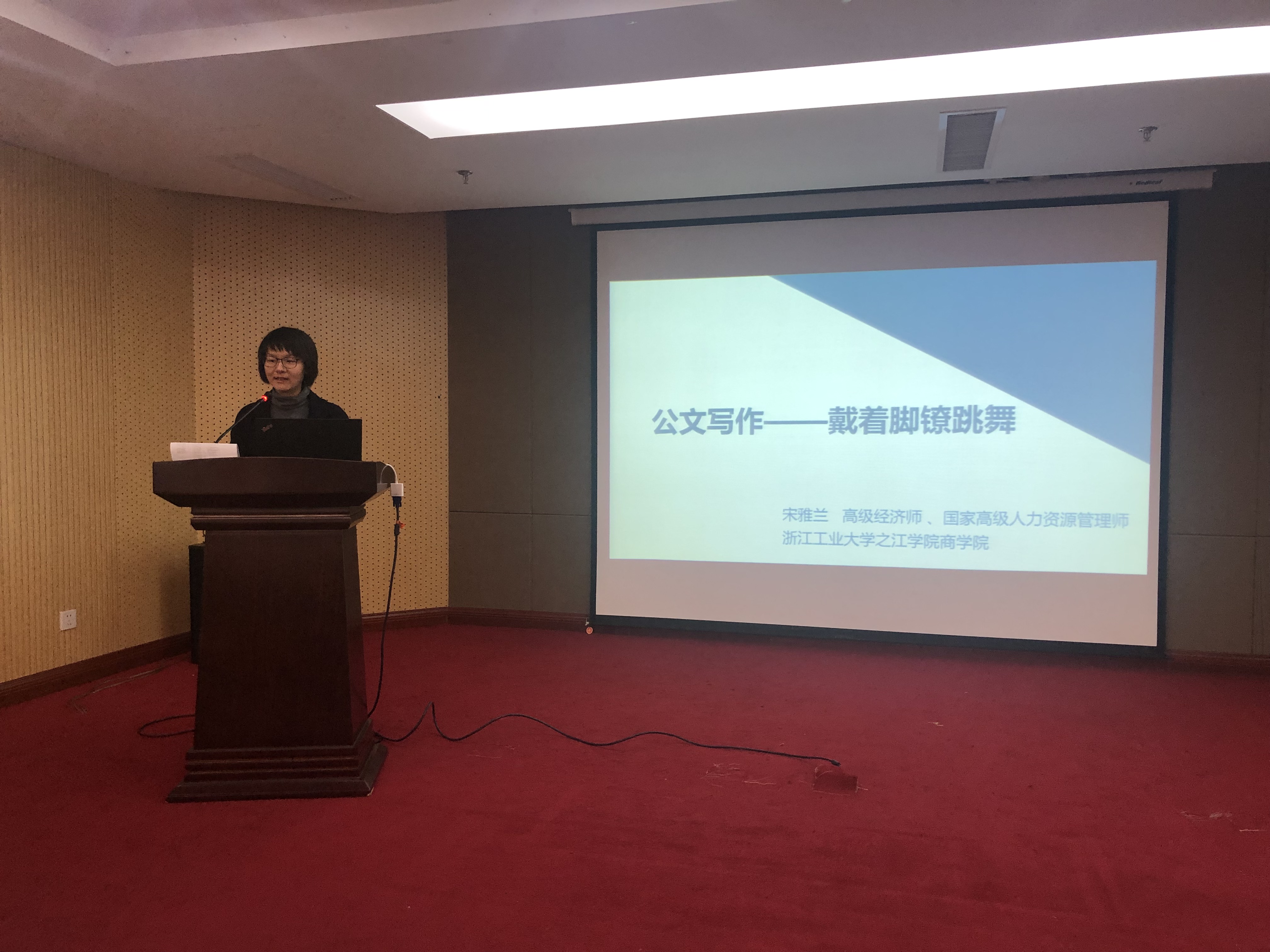本次培訓(xùn),邀請浙江工業(yè)大學(xué)之江學(xué)院宋雅蘭老師進(jìn)行授課。培訓(xùn)課上,宋雅蘭老師向大家深入淺出的講述了公文寫作的基礎(chǔ)知識,詳細(xì)闡述了公文的規(guī)范格式,著重為大家講述了決定、通知、公告、報告、請示等公文的寫作方法,并逐個舉例說明,生動形象。通過培訓(xùn),大家收獲頗豐,對公文寫作有了全面認(rèn)識和深刻理解,希望能把學(xué)到的知識用到工作中,增強(qiáng)公文規(guī)范意識,不斷提高公文寫作水平,以更好地完成本職工作。