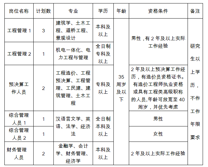 根據(jù)工作需要,決定面向社會公開招聘若干國有企業(yè)工作人員,現(xiàn)將有關事項公告如下: