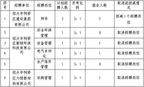紹興市柯橋區(qū)建設集團有限公司取消招聘計劃的公告