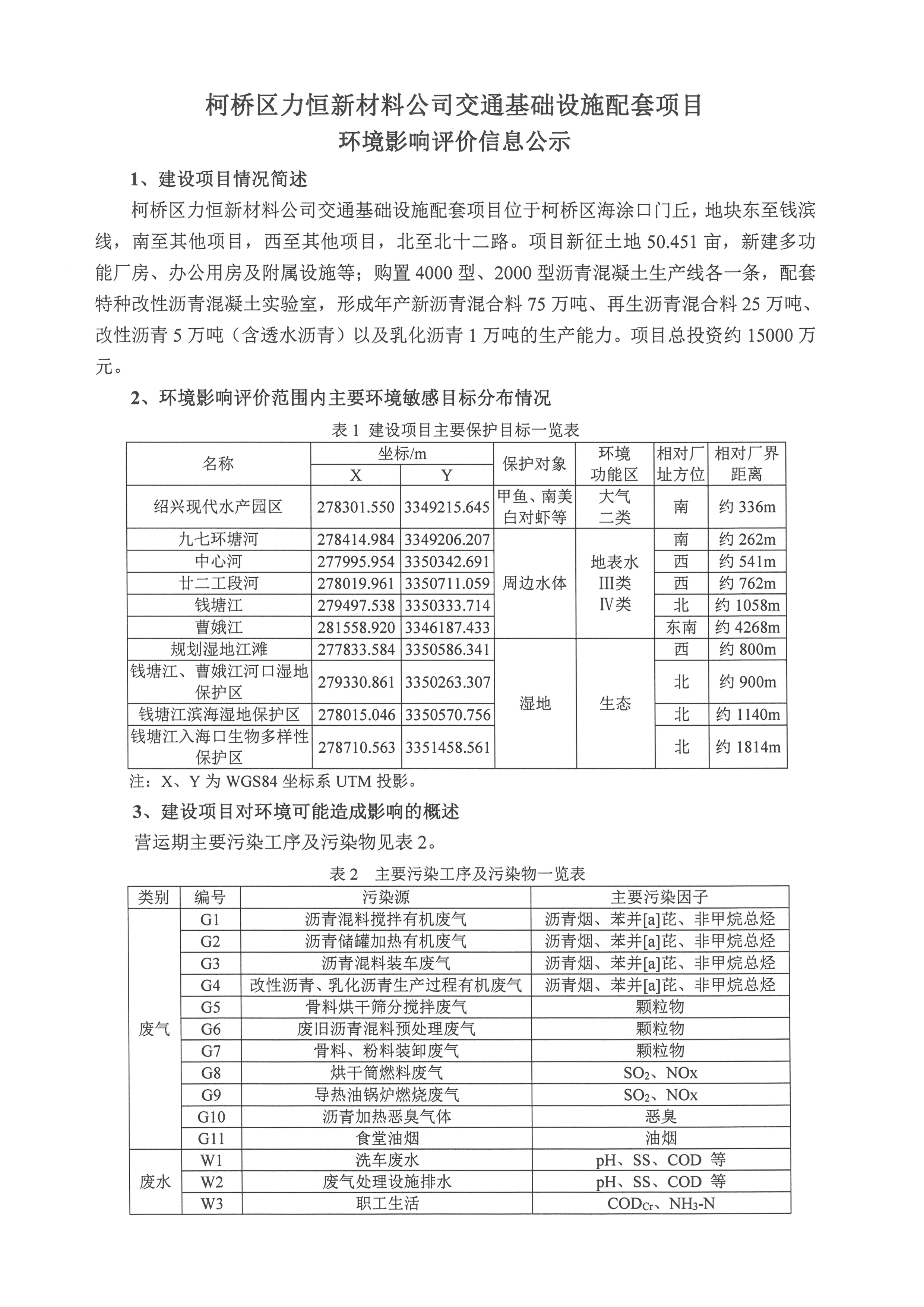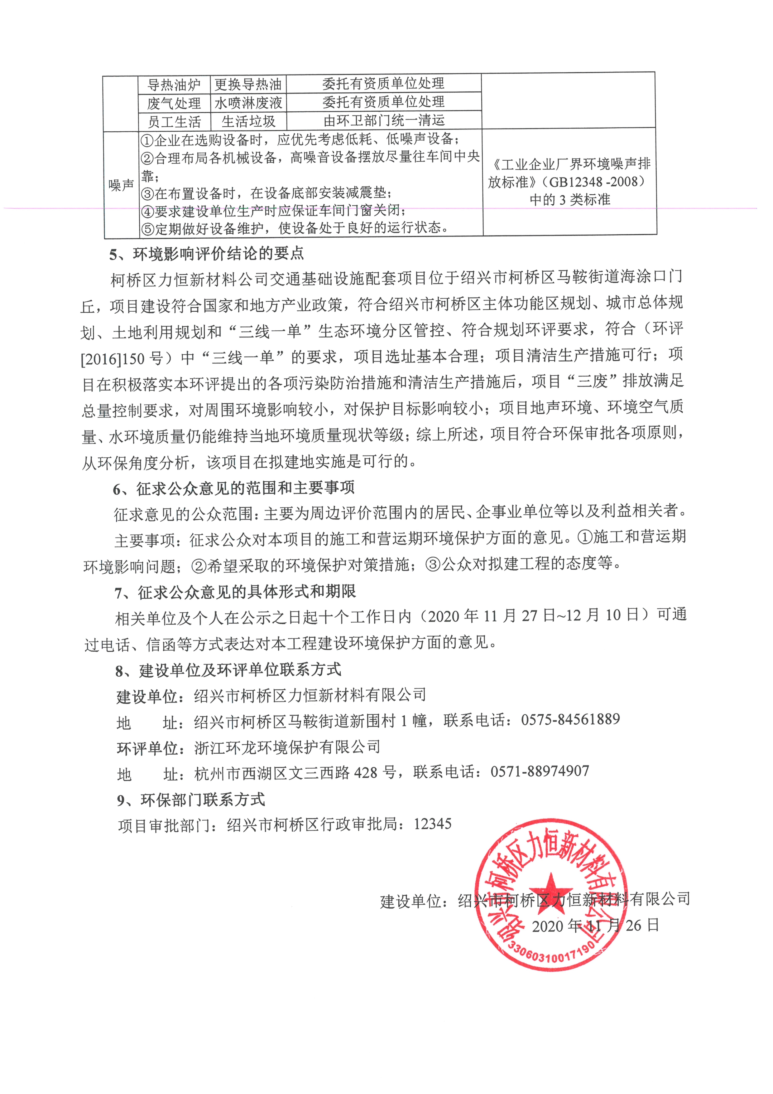 柯橋區(qū)力恒新材料公司交通基礎(chǔ)設(shè)施配套項目環(huán)境影響評價信息公示