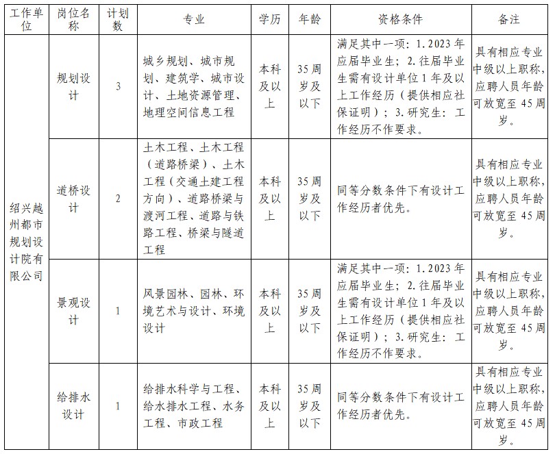 紹興越州都市規(guī)劃設(shè)計(jì)院有限公司派遣制人員招聘公告