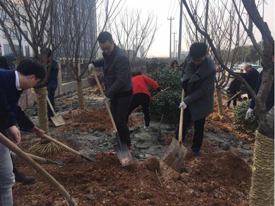一年一度的植樹節(jié)即將到來,為提高集團(tuán)全體職工的環(huán)保意識(shí)和文明素質(zhì),3月9日下午,城投集團(tuán)組織團(tuán)員青年在浙江工業(yè)大學(xué)之江學(xué)院北大門開展了“播一片綠林,種一份愛心”為主題的植樹活動(dòng)?;顒?dòng)現(xiàn)場,在集團(tuán)黨委委員、紀(jì)委書記陳雄健同志的帶領(lǐng)下,32名團(tuán)員青年分工明確,有的挽起衣袖,拿起鏟子松土挖坑,有的合力種植小樹苗,有的結(jié)伴施肥澆水。春日的暖陽下,交織著汗水與歡笑。